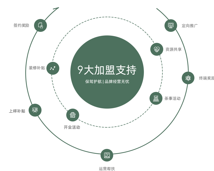 第一步:意向洽谈 第二步:接洽参观 第三步:达成合作(1.实地考察 2.体验空间规划 3.设计施工监理 4.开业筹备 5.培训实践 6.正式开业)