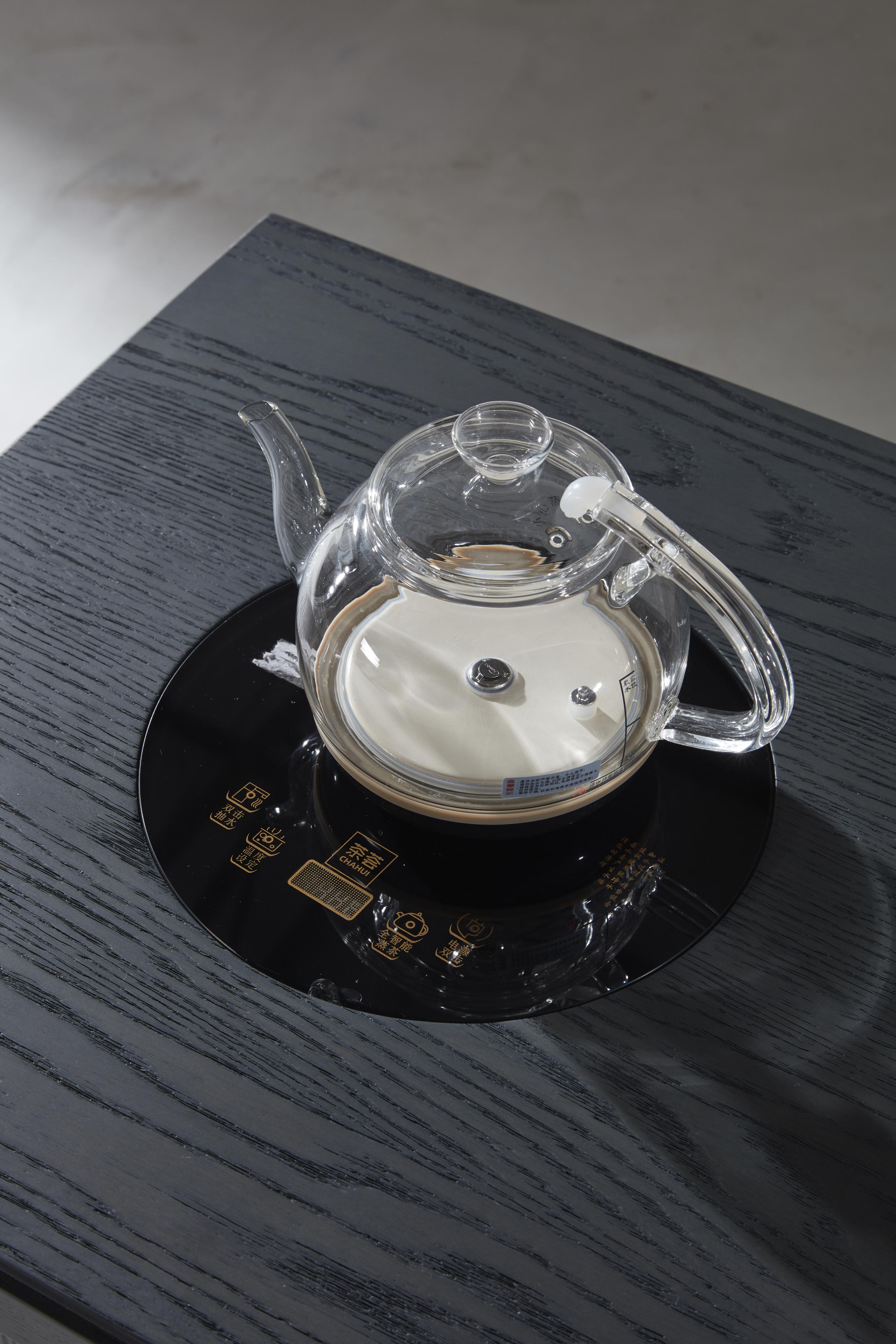安澜茶台秉承着中式茶道独特的节奏感,深灰的色调给空间带来古朴而安静的氛围。 此外,安澜茶台抛弃了繁琐的装饰,别具禅意的东方茶道结合干净利落的现代几何线条, 打破了时间和空间的界限,给现代品茶增添了独特的韵致。 安澜茶台配有泉涌上水电器,巧妙隐藏了储物空间,移动灵活, 可根据茶室主人喜好摆放在空间的不同位置。