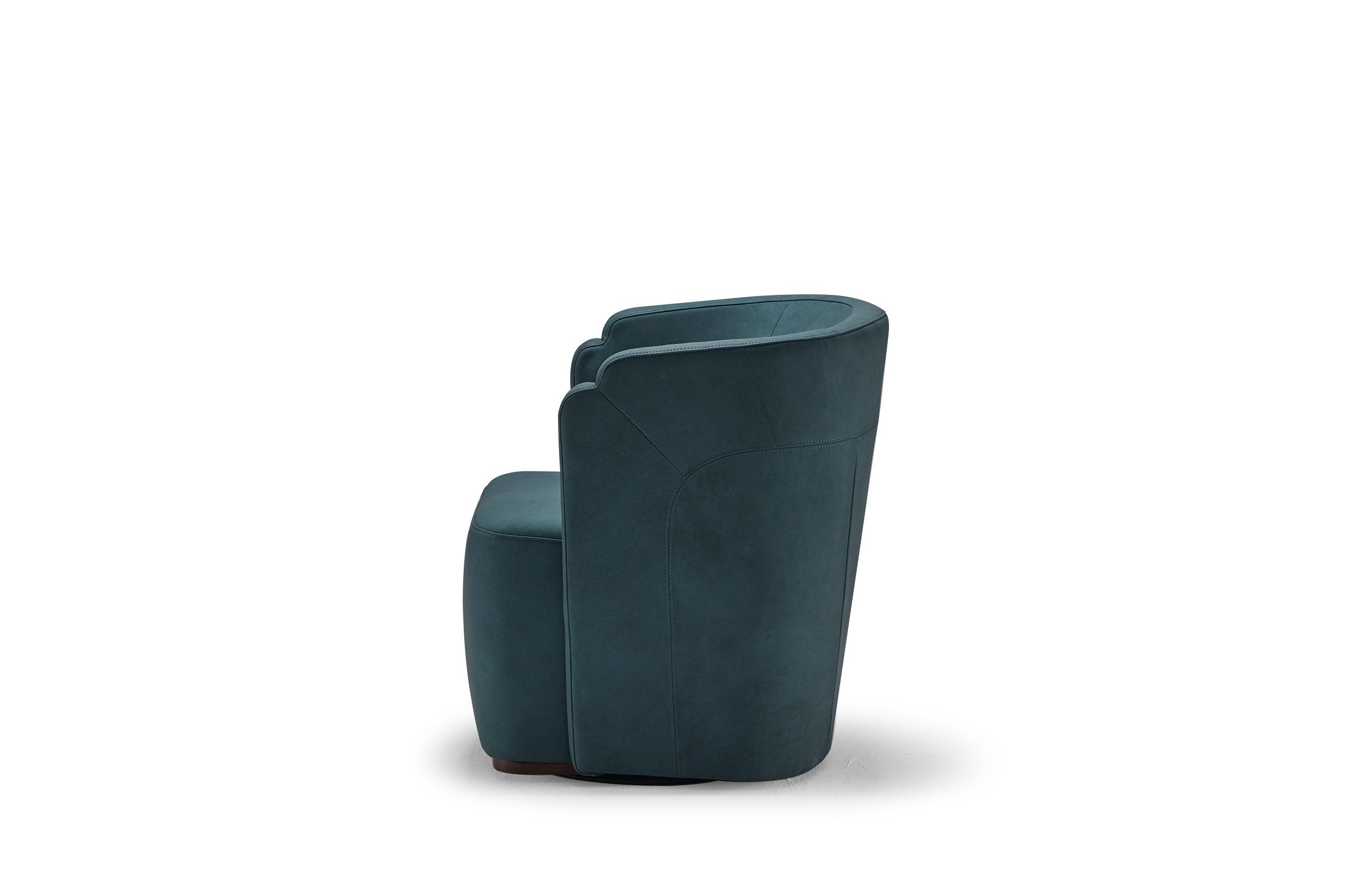 茶椅使用孔雀蓝牛皮的配色又为其增添现代时尚之美感,是古典与现代的碰撞融合增加转盘底座,可自由移动回转,使用更灵活有趣味。