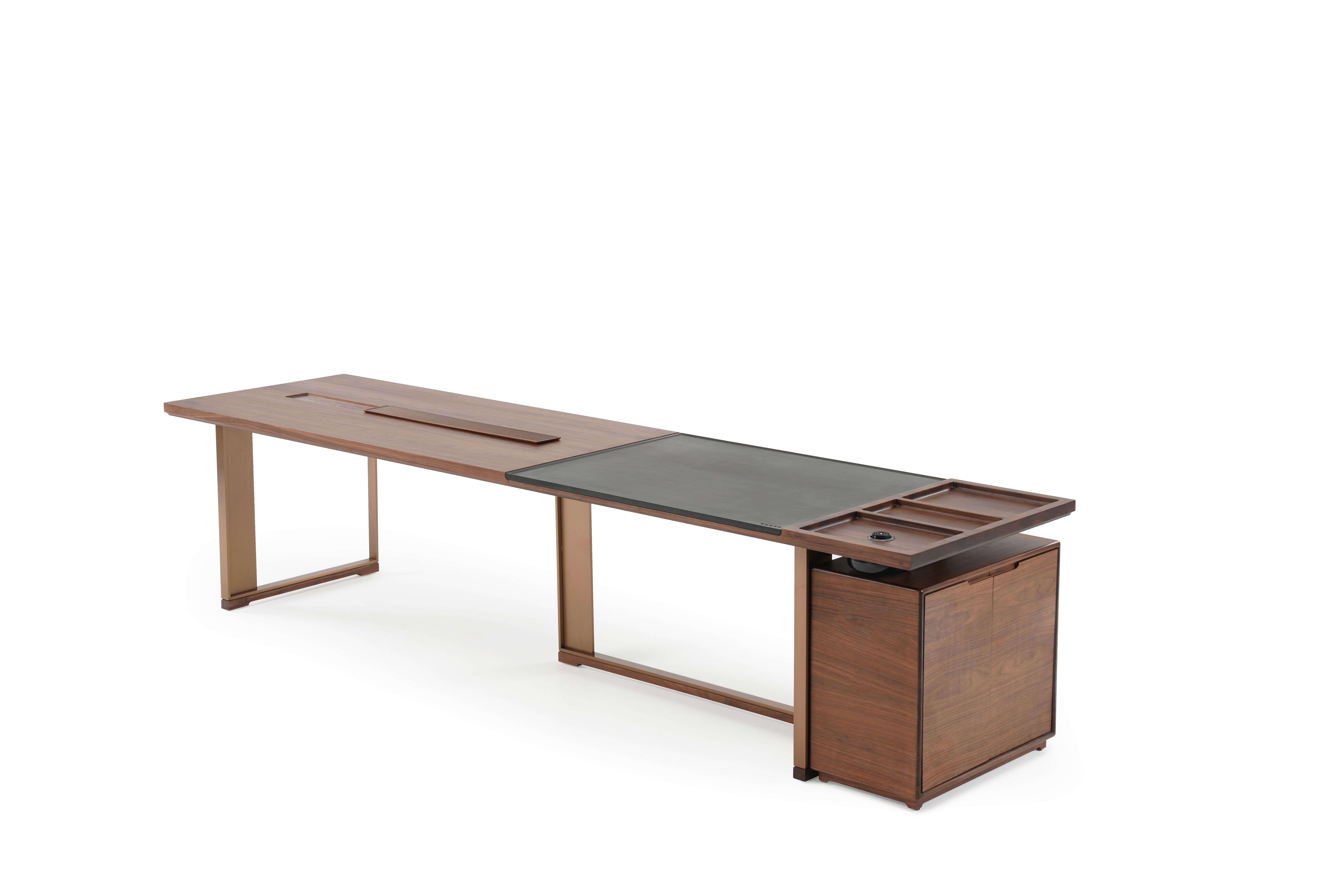 茶桌造型简洁大气,左侧区域搭配了可移动的茶盘,在喝茶人数较多的场合下,可靠此茶盘将茶杯、公道杯左右移动,客人自在随心添取茶水,避免了主人起身弯腰递茶的不方便。也可单独拿出,当做独立茶盘。中国人喝茶讲究轻松自在、平等自由,这种独创设计还更添了一丝趣味性。